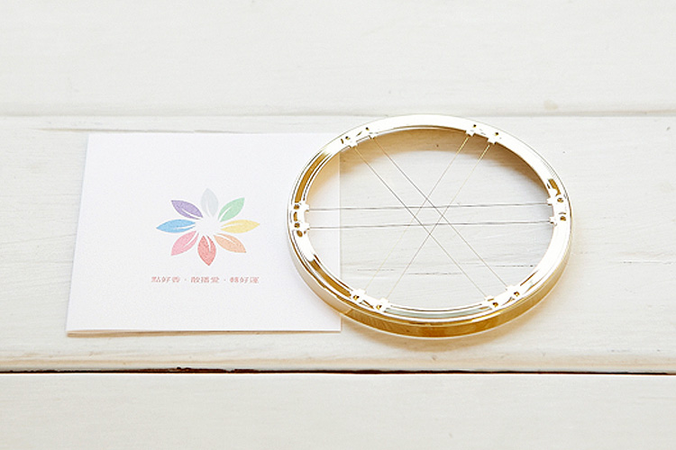 網框純銅製作再以鍍以24K金,採六條日本進口高科技金屬絲製作盤架,凝聚神祕學符號引光聚氣的設計,是賴生芳老師創意結晶的專利工法。